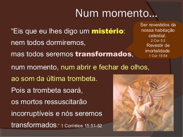 Acontecerá que, afinal, virá o tempo em que a própria morte será banida. Paulo escreveu, parafraseando do livro de Oséas, acerca da ressurreição que se dará quando Jesus regressar: “Porque convém que isto que é corruptível se revista da incorruptibilidade e que isto que é mortal se revista da imortalidade. E, quando isto que é corruptível se revestir da incorruptibilidade, e isto que é mortal se revestir da imortalidade, então, cumprir-se-á a palavra que está escrita: Tragada foi a morte na vitória. Onde está, ó morte, o teu aguilhão? Onde está, ó inferno [sepultura], a tua vitória?” (1 Coríntios 15:53-55). A morte será tragada e derrotada na vitória da vida eterna.