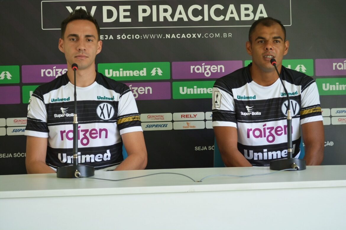 O XV de Piracicaba apresentou oficialmente na tarde desta quarta-feira (16), mais dois reforços contratados para a disputa da Série A2 do Campeonato Paulista. O lateral-direito Robertinho, de 28 anos, ex-Bragantino, e o zagueiro Airton Júnior (29), ex-Nacional/PB, foram escalados para a entrevista coletiva no Barão da Serra Negra, encerrando o ciclo de apresentações do elenco.