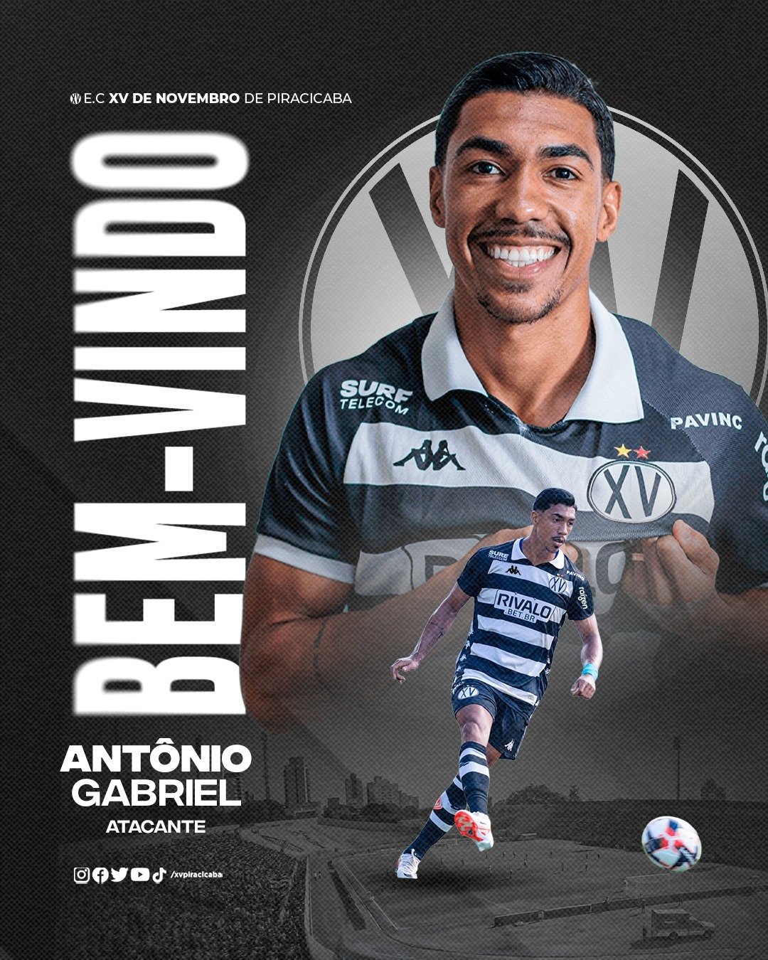 Prestes a estrear na competição, o XV de Piracicaba ganhou o reforço do atacante Antônio Gabriel, 23 anos, para a disputa do Campeonato Brasileiro Série D 2026. A diretoria e o departamento de futebol profissional do clube agiram rápido e o nome do atleta, que estava no Água Santa, já foi publicado no BID (Boletim Informativo Diário) da CBF (Confederação Brasileira de Futebol) nesta quinta-feira, 2. Com ele, são quatro reforços anunciados nesta semana, visando o torneio nacional.