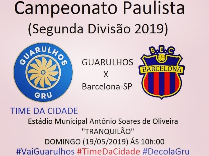 Atenção torcida guarulhense, o Time da Cidade está pronto para o returno da competição, e o próximo desafio será diante do Barcelona-SP, domingo (19/05) no Estádio Municipal Antônio Soares de Oliveira ás 10h:00! Convida seus amigos e traga seus familiares, é para lotar o Tranquilão e dá aquela força para o Índio da Metropolitana rumo a classificação para segunda fase!