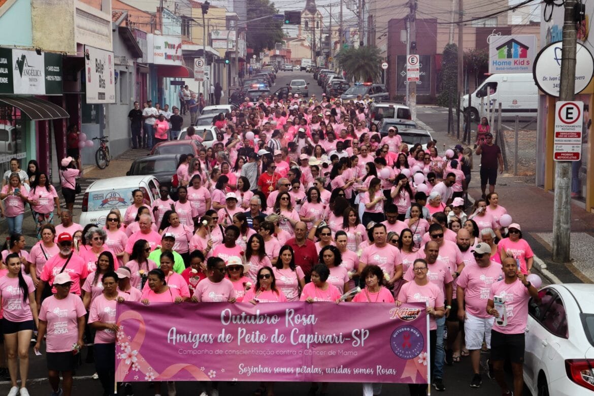 A já tradicional Caminhada do Outubro Rosa teve sua edição de 2023 no último sábado, dia 21, conscientizando todo o público feminino presente à prevenção e combate do Câncer de mama e colo de útero. O evento que teve organização do grupo “Amigas de Peito” contou com parceria da Secretaria da Saúde e teve sua concentração no Pátio da Igreja Santa Cruz, contando com a presença de aproximadamente mil pessoas em trajeto rumo a Praça Central.O público participante usou camisetas rosas em prol da Campanha mundial sobre a prevenção e conscientização das mulheres contra essas doenças. No Platô da Praça Central, um emocionante vídeo com depoimentos de pessoas que venceram a doença foi exibido, servindo de inspiração para as mulheres que passam por situações semelhantes. O prefeito de Capivari, Vitão Riccomini, esteve presente, acompanhado do vice-prefeito, Bruno Barnabé e também pelo secretário de Relações Públicas, Rafael Massouh e a secretária da Saúde, Vládia Guimarães.“A Caminhada do Outubro Rosa é sempre uma ação muito bonita que temos aqui na nossa cidade e aborda de um jeito lúdico esse tema tão delicado para o público feminino. Em Capivari temos o Programa de Prevenção e Atenção ao Câncer de Mama – Jusciane Ferreira, para atender as mulheres do município com um mamógrafo de última geração no Centro de Especialidades Médicas. Agradeço a Isabel Carneiro e todo o grupo Amigas de Peito que ajudam a conscientizar as mulheres sobre a importância da prevenção através de ações como essa”, exaltou o prefeito Vitão.O evento ainda disponibilizou para o público participante diversas atividades voltadas à Saúde, tais como aferição de pressão arterial, glicemia e também aulas de Treino Funcional, que foi organizada em parceria com a Secretaria de Esportes da cidade.Para mais informações sobre atendimentos voltados a esse tópico, a Secretaria da Saúde atende através do telefone (19) 3492-8200. Lembrando que também é viável procurar o Posto de Saúde mais próximo de sua residência.Prefeitura de Capivari. Transformando o presente, construindo o futuro.