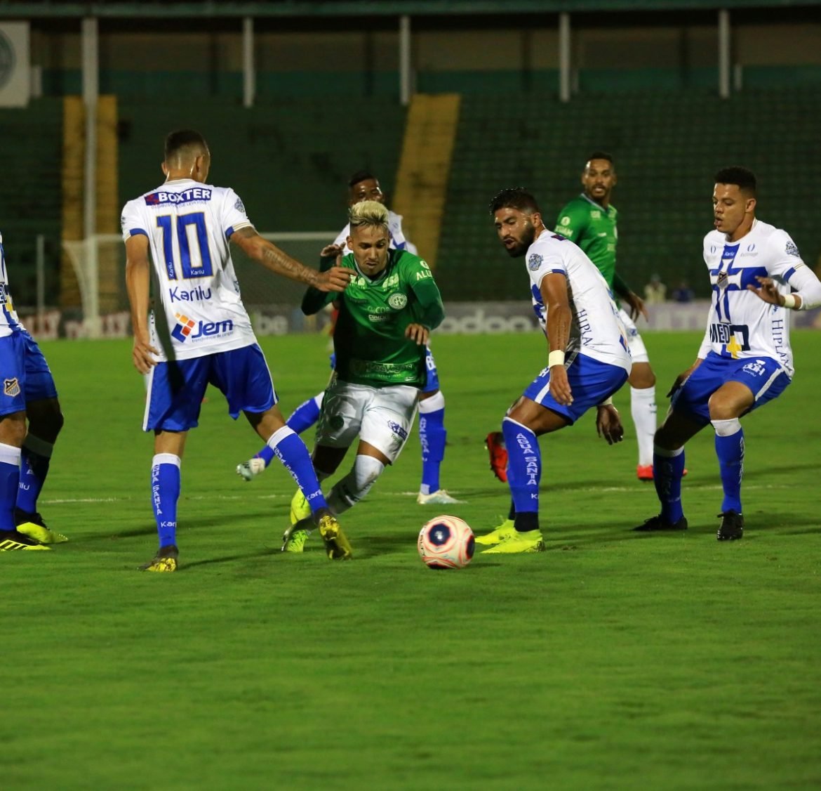 Com a volta de Junior Todinho e as presenças de Leandro Almeida e Eduardo Person entre os titulares, o Guarani teve uma baixa significativa no primeiro minuto da partida. O volante Igor Henrique sentiu a coxa esquerda e teve que ser substituído. E a atuação bugrina não foi boa. Contra um adversário que veio fechado e para jogar no erro, a equipe da casa teve muitas dificuldades para produzir. Sem profundidade, trocou passes à exaustão, como de praxe, mas sem tanto perigo.