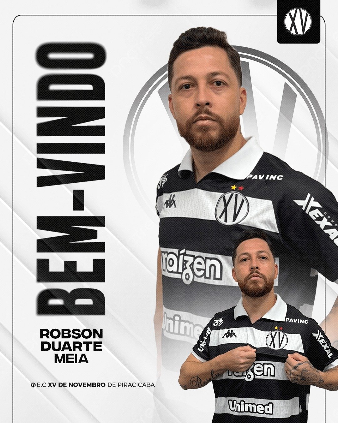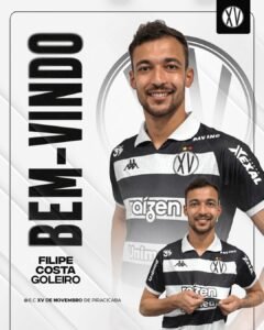 O XV de Piracicaba confirmou na manhã desta quinta-feira, 11, mais duas contratações visando os desafios de 2026. O goleiro Filipe Costa, que completa 30 anos exatamente nesta data, ex-Ferroviária, e o meio-campista Robson Duarte, 32 anos, que vem após obter o acesso para a Série B nacional com o Londrina, já estão integrados ao elenco do Nhô Quim, que, com eles, soma oito reforços anunciados. A estreia quinzista no ano que vem será no fim de semana de 11 de janeiro.