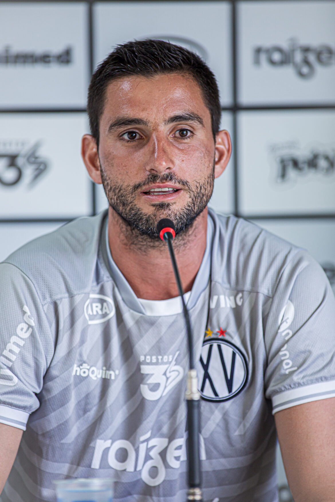 Oficialmente apresentados como reforços do XV de Piracicaba para a disputa do Paulistão A2 Sicredi 2025, na tarde desta quinta-feira, 9, o goleiro Pegorari, 33 anos, ex-Guarani, e o zagueiro Guilherme Lacerda, 24 anos, ex- Vila Nova/GO, falaram, na Sala Bauma de Imprensa, sobre os objetivos e anseios em suas chegadas ao clube. O Nhô Quim estreia na competição na próxima quarta-feira, dia 15, às 10h00, diante do Oeste, no Estádio Municipal Orlando Batista Novelli, a Arena Barueri.