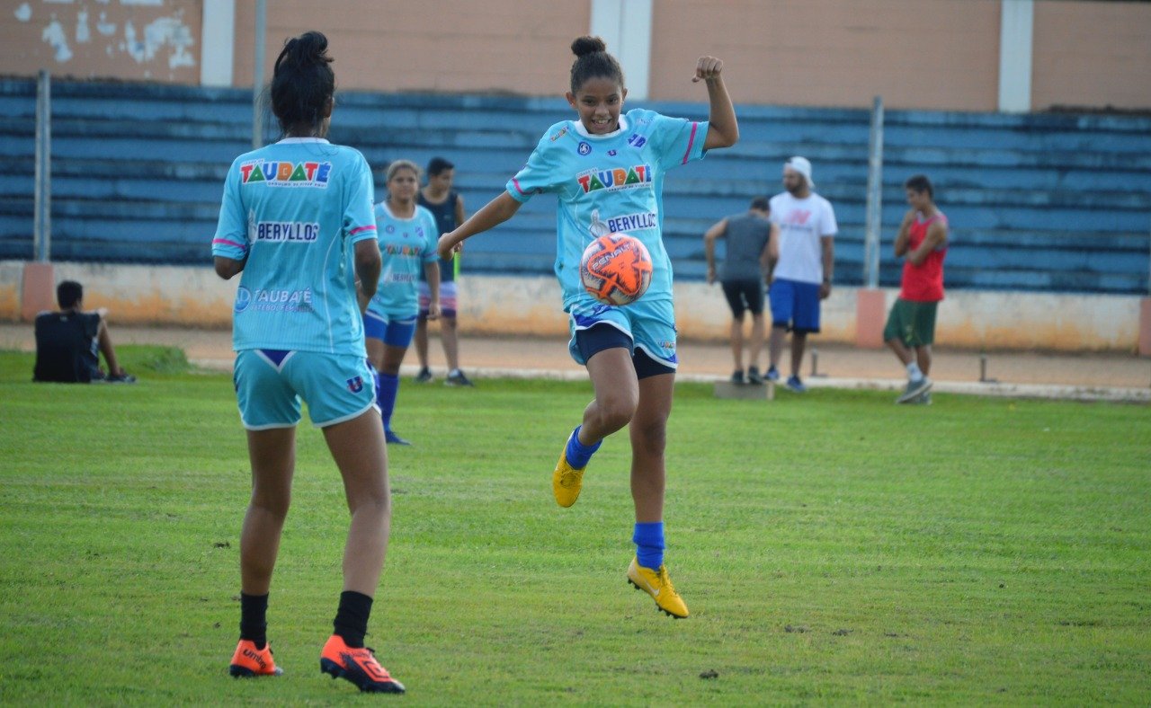 O time taubateano é formado por alunas da Escolinha de Futebol, cujos trabalhos são realizados em parceria entre a Associação Desportiva (AD) e a Secretaria de Esportes e Lazer de Taubaté.